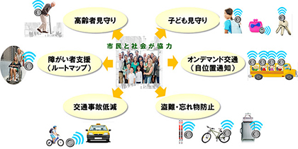 「見守りサービス」の実証実験では、小学校、福祉施設、公共施設、地元大手私鉄や地下鉄駅などの公共交通機関等に検知ポイントを定点設置するだけでなく、地元タクシー協会や大手運送会社の運転手、大手保険会社や地元大手生鮮品販売会社の営業担当者、また自転車防犯サービスの運営会社など多くの協力者のスマートフォンを検知ポイントとして活用することで、より広域での検出ネットワークを形成して、発見精度の高い見守りを実現するとしている。