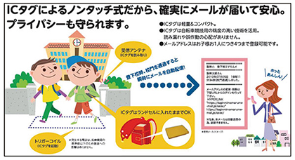 ハンズフリーの無線ICタグはランドセルに入れるタイプで、誰がサービスを受けているかは分からない点から匿名性も守られているという。【YG】