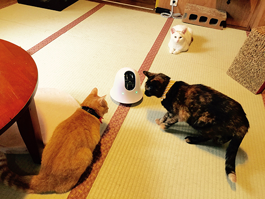 カメラ本体が走行機能を持っていて自由に移動ができるので、例えば「ペット」の様子なども、ユーザーが操作して間近まで移動させられるから近距離からの確認もできるし、通話機能で声をかけることもできる。