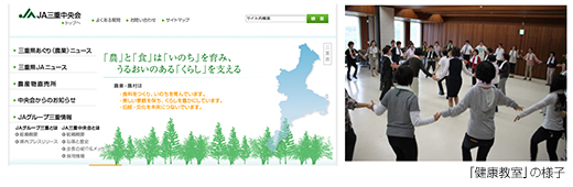 これに沿って、三重県内のJAでは、組合員や役職員を対象に「認知症サポーター養成講座」なども定期的に開催。現在までで述べ7,000人が受講しているという。さらに、地域の高齢者対策として、要介護状態や孤独死を防ぎ、元気な高齢者を増やすため『JA健康寿命100歳プロジェクト』と題して「食事」「運動」「健診・介護・医療」の3分野で、イベントを実施。「健康・料理教室」や、健診活動などの取り組みが県内各地で展開されている。