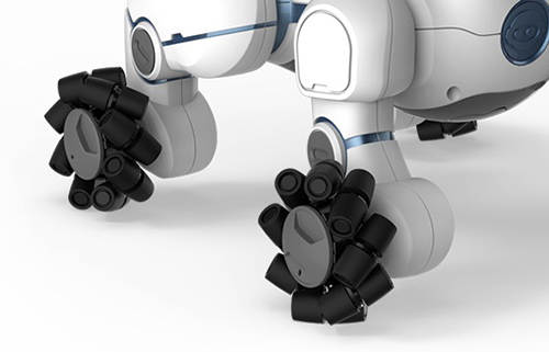愛らしさを象徴するその動きの秘密は「メカナムホイール(車輪)」にあり、前後左右どんな方向にも機敏に移動することができる。(以下写真参照)