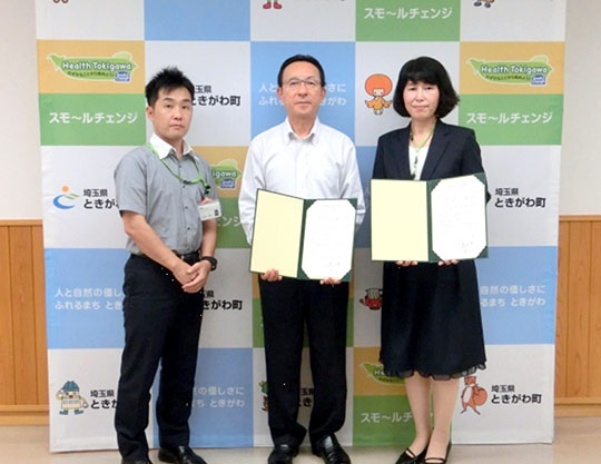 ときがわ町役場で行なわれた式には、埼玉エリア西北ブロック地域で活動する神山茂美ブロック委員長、該当地域を担当する宮島文則コープデリ東松山センター長らが参加、他の協定締結団体とともに、関口定男ときがわ町町長と協定書を取り交わした。