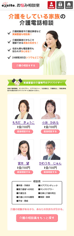 エキサイト(本社 東京都港区)では、電話やメールを通じて専門カウンセラーに相談できる『エキサイトお悩み相談室』で、「介護アドバイザーによるお悩み相談」の対応を開始した。10月27日(木)から。