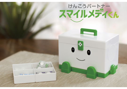 本体内蔵のマイクが音や声に反応して話しをする。健康に関する雑学、食べ物、睡眠、ことわざ、運動、早口言葉など、約600種類の「健康に関する会話」がメモリーされている。あらかじめ、薬を飲む時間帯を設定しておくことで、『スマイルメディくん』が「お薬サイン」を発してくれる。