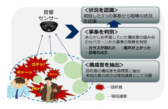 目的音を聴き分ける「音状況認識技術」で状況を把握