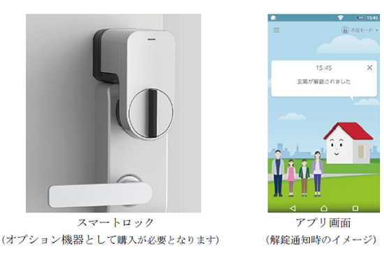 このほど追加された『スマートロック』機能で、外出先からの鍵の施錠、開錠が可能になるため、かけ忘れ確認はもちろん、より安全な自宅の防犯管理にもつながる。