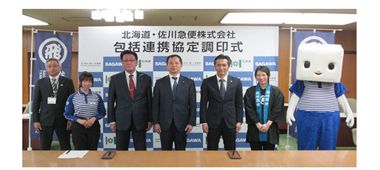 佐川急便(本社:京都市南区)では、北海道の地域活性化を図ることを目的に『包括連携協定』を締結、5月24日(木)に北海道庁においてその締結調印式が執り行なわれた。式には辻泰弘北海道副知事、同社内田取締役らが出席した。