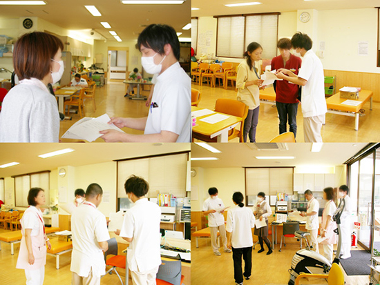今回の訓練では、日本原病院のリハビリテーション科が主導で計画。5月16日、14時より『徘徊対策訓練』が開始された。この数日前には院内連絡で各部署に通達され、部署ごとに1〜2名の参加を募ったという。 実際に利用者が徘徊で院外に出てしまった場合、1つの部署だけで捜索に出ることは難しいため、あらかじめ各部署が連携して捜索に協力できるようにこのような方法がとられている。