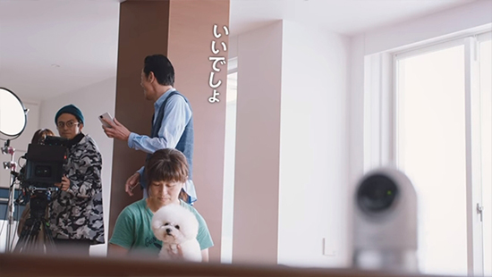 全21本のシリーズの中で、小紙みまもりプレスが注目したのは『屋内スイングカメラ、ペット見守り篇』。『スマ@ホーム』シリーズの屋内スイングカメラ『KX-HC600-W』の機能が紹介されている。「ペットの見守りに──」とうたわれている製品で、左右360°、上下約90°を見渡せる首振り機能を搭載。スマホでカメラを遠隔操作できるので、部屋の中で動き回るペットを追いかけて撮影することができるというもの。