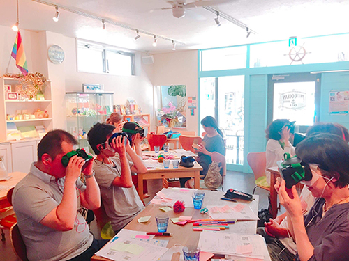 この催しは、認知症の人から見た世界をヴァーチャルリアリティー(VR)を使って疑似体験し、「主体的・対話的に学ぶ」というのが目的。同協会が作成した「認知症の状態を体験するVRコンテンツ」を、ヘッドセットとスマホを使って視聴。映像には「頼んだことができない」「生活上の行動がわからない」など、認知症の代表的な状態ごとに分けられた3つのエピソードが用意された。