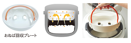 老化によっておこるごはんの飲み込みにくさの原因は「ごはんの粘り(べたつき)」であることに着目して、炊飯時の「おねば」を回収するという新たな発想が採用された。このことで、やわらかく口の中に残存しにくい「=飲み込みやすい(さらっとした)ごはん」が炊けるという。