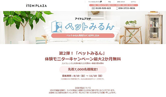 ◎『ペットみるん』専用カメラ申し込みサイト/アイテムプラザ