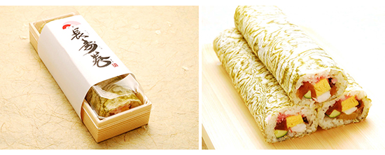 節分にいただく「恵方巻」同様に、敬老の日には「長寿巻」をいただいて祝うという習慣が、数年前よりじわじわと拡大している。太巻きスタイルだが、海苔を使わずに「おぼろ昆布」で巻かれているのが『長寿巻』の特徴で、高齢者向けに「柔らかな口あたり」に仕上げてあるという。