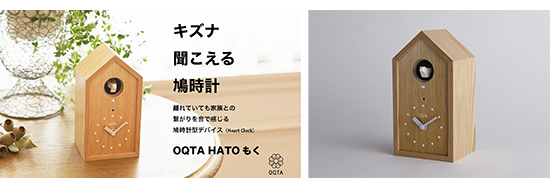 “キズナ聞こえるIoT鳩時計”のキャッチフレーズで展開されている『OQTA HATO(オクタ ハト)』とは、離れた相手に「音」で思いを届ける「鳩時計型のIoTデバイス」。アプリを起動してボタンを押すと、遠く離れた相手のもとで「1秒ほど鳩が鳴く──」というシンプルな仕組み。電話やメールなど、言語を用いる通信手段に比べ、『誰かを想う気持ちだけ』を音にして届けるという機能が最小限に抑えられたコミュニケーションツール。