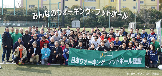 『ペンギンズ・カップ』を主催する同連盟の桑田丹理事長は、「ウォーキングフットボールは適度な有酸素運動ですので、全世代の方にご参加いただけます。また、ゲームとして楽しいのと同時に、競技という面では勝負の厳しさを味わえることも特長のひとつですね」と語る。「コート上で歩くプレイヤーの姿から連想されたのが『ペンギン』。それが『ペンギンズ・カップ』の由来です。これから多くの方々に広げていきたいです」(桑田理事長)