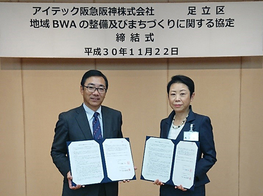 東京都足立区(足立区)とアイテック阪急阪神(大阪市福島区)では、『地域BWAの整備及びまちづくりに関する協定』の締結を発表した。