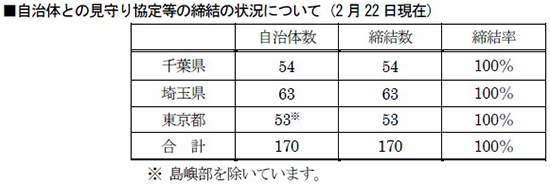 千葉県・埼玉県・東京都の「全170自治体」と協定締結
