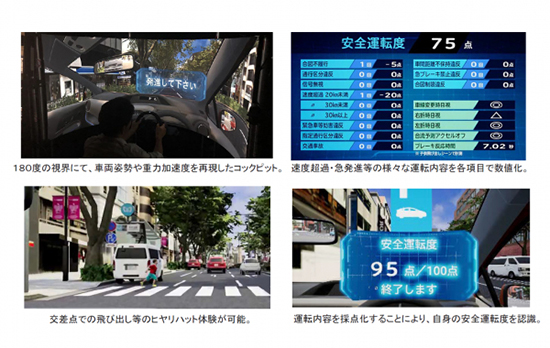 本製品は、免許取得後に「運転技術を採点化」することは現実的に難しいことを受け、「シミュレーター」を活用してブレーキ反応速度を計測、「エビデンス」として残る形で運転技能を採点化するというもの。ソフトウェア開発にはキャドセンター(東京都千代田区)の協力を得たとのこと。