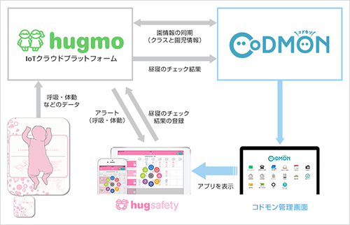 アートチャイルドケアはこれまで、こども施設業務サポートサービス『コドモン』(運営:コドモン/東京都港区)を利用しているが、この『コドモン』のプラットフォームが『hugsafety』で検知・登録したデータを同期できるようになったことを受けて、また、このほど「乳幼児突然死症候群」対策の強化を図るため、保育者の心理的負担を軽減するとともに、『コドモン』においてデータを一元管理することで乳幼児の健康管理を包括的に行い、業務を効率化することなどを目的に『hugsafety』の導入にいたったのだという。 【A.Yagisawa】
