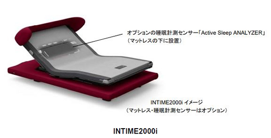 『INTIME2000i』は、オプションの「睡眠計測センサー」と組み合わせることで遠隔での見守りが可能となる。その他、丸みを帯びて包み込むような形状の「ヘッドボード」や、ファブリック生地のカバーを備えた新デザインなどの採用が特徴。