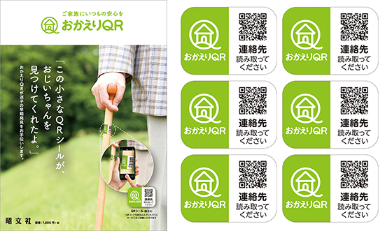 『おかえりQR』は、同サービスのアドバイザーであり、認知症の人の見守りと生活コミュニティについて知見をもつ、岡本多喜子教授(明治学院大学 社会学部)の協力を得て商品化されたもの。道に迷ってしまう不安のある「見守り対象者」の持ち物に『QRシール』を貼っておくことで、もしもの時の「早期発見」に役立つというのがこのサービス。