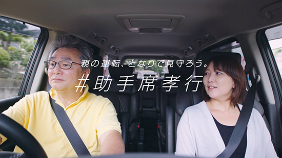 日産自動車(横浜市西区)では、「車を運転する親・祖父母をもつ全てのご家族」に向けて、助手席からドライバーを見守り、運転能力を確認することを薦める 『#助手席孝行』の呼びかけを開始した。