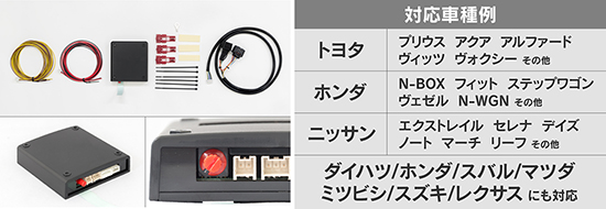 商品は「カプラー」取り付けと「配線処理」だけで取り付けが可能で、車検に影響をおよぼす「OBD」の使用もなしとしている。対応車種は国産メーカー車両200車種以上。日本製。