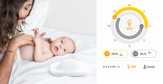 3000Kの色温度のライトを採用し、視力形成時期の赤ちゃんにも優しい「3000Kの色温度のライト」の採用で、温かみのある光を実現。2時間30分の充電で、最大240時間(約10日間)の点灯が可能。本体で4段階の明るさを設定できるほか、アプリからは100段階の設定も可能という。 【A.Yagisawa】