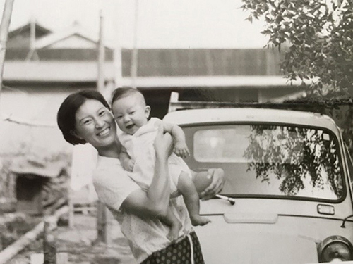 「祖母の家で、母が初めて授かった赤ちゃんを抱いて、親子共に最高の笑顔で。」
