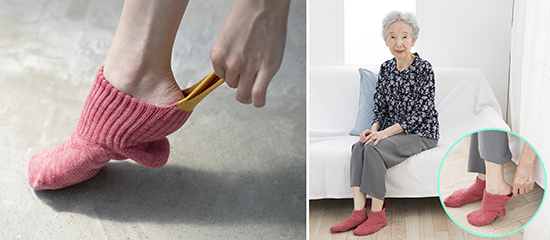 無理な体勢でかがむ辛さを軽減したい『ループ付きソックス』:ナイガイ