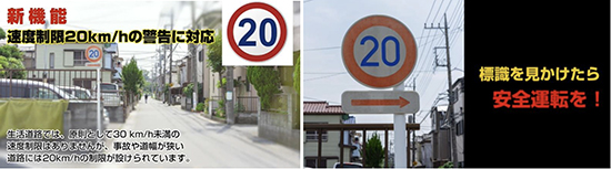 新たな『速度制限標識警告機能』に「20km」を追加:PAPAGO JAPAN