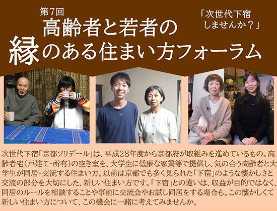 京都府では、2020年1月25日(土)に『第7回:高齢者と若者の縁のある住まい方フォーラム』を開催する。