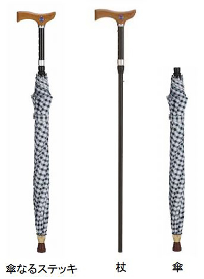 「杖の使用に抵抗を感じる方は、雨傘を杖の代わりに使われるケースもあり、本来身体を支える目的で作られていない傘を杖として使用すると危険が生じます。本商品は、こうした危険性や、傘と杖両方を持ち歩かなければいけない手間を解消し、雨の日も晴れの日も快適で安全なお出かけをサポートします──」(フランスベッド) 【A.Yagisawa】