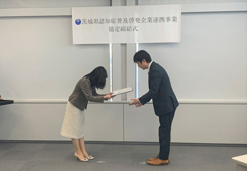 茨城県では、企業と行政が一体となり「茨城県認知症普及啓発企業連携事業」を実施している。この事業は「認知症の人と家族を支援し、認知症の人や家族が安心して暮らせる環境づくり推進」を目的に発足したもの。