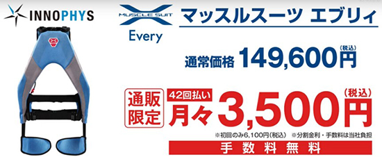 この公式通販サイトでは、今まで以上に手軽に『マッスルスーツEvery』が購入できるようにと、分割購入の場合でも「分割金利、手数料、送料無料」などの条件で入手することができるという。
