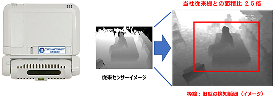 『ネオスケア』は、写真処理機器で長年培った同社(ノーリツプレシジョン)の画像処理技術が活用されている。「極めて精度の高い検出とプライバシーに配慮した上で視認性の高い映像再現を実現した、革新的なロボット介護見守り機器です──(ノーリツプレシジョン)」。 【A.Yagisawa】