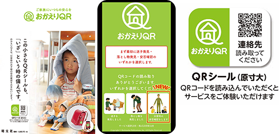 『おかえりQR』は、「シールとQRコード」が一体になった商材で、道に迷う心配のある高齢者や児童をはじめ、ペット、遺失物等にも対応した「早期発見支援サービス」。たとえば、『おかえりQR』シールを道に迷ってしまう心配のある高齢者や児童など、「見守りたい人」の持ち物などに貼り、シールに記載された「ID番号」とメールアドレスを事前に登録しておく。