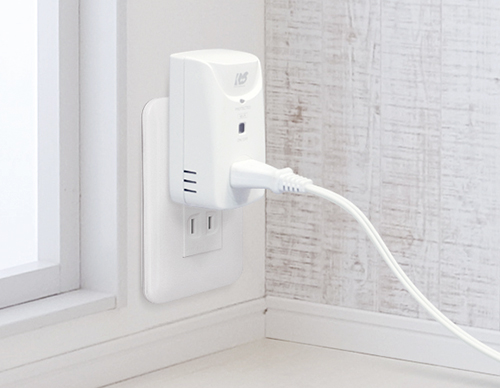 『Wi-Fiワットチェッカー』は、消費電力を測ってWi-Fi経由で計測値を確認できるというデバイス。コンセントに設置し、接続したデバイスの電力計測と蓄積、アラート通知、電源供給の「オン・オフ」を行う機能を備えている。