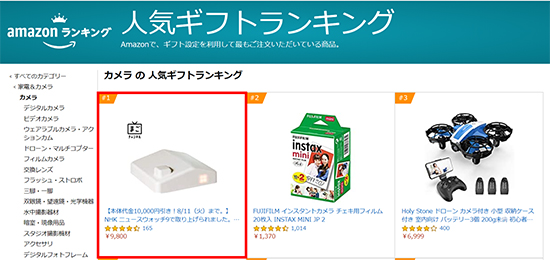 Amazon人気ギフトランキング・カメラカテゴリー1位を獲得:チカク