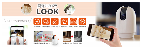 リッチェル(富山市)では、ペットの様子をスマホを通して外出先から確認できる『見守りカメラ LOOK』の販売を開始した。