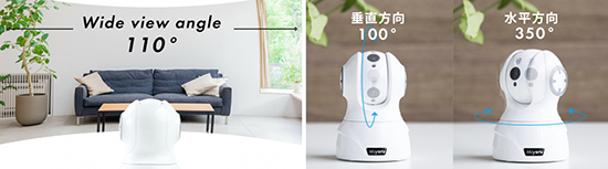 新製品は、「500万画素」の高画質の撮影と、垂直方向に110度、水平方向に350度という広範囲なカメラ可動域撮影というのが大きな特徴で、従来のカメラの「ボヤけて見えない」「見切れている」などといった問題を解決したとしている。