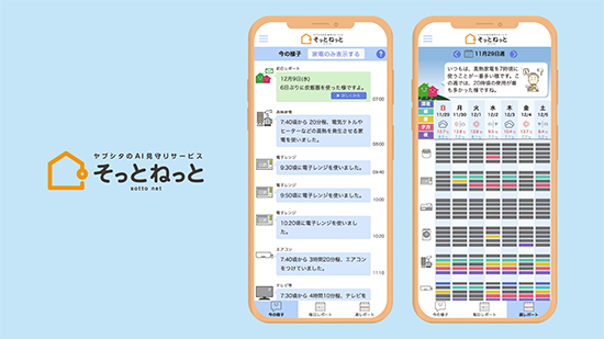 見守りサービス『そっとねっと』は、電気の使用を分析する同社独自のAI(人工知能)技術「機器分離推定技術」によって、家電の使用状況から見守り対象者の行動を把握し、カメラなどの直接的な見守りとは異なる、日常の中に溶け込んだ「さりげなく優しい」見守り方を実現するというもの。