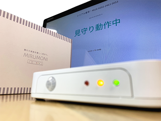 本サービスは初期費用も設置工事も不要で、4G回線を内蔵した『みるモニ』端末をテレビ横に設置するだけという手軽さが特徴。毎月額費用「2,600円(税別)」というシンプルなシステム(基本的に2年間契約)。見守る側は、スマホに専用アプリをインストールして、『みるモニ』から送信される「見守り情報」を確認する。